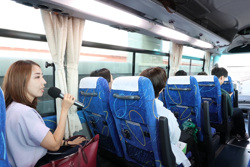 帰りのバスの中では、2日間を通して得た学びや感じたことについて共有する時間が設けられました。そこでは、福島の現状について、対話の重要性、脱炭素との向き合い方、今後受講生の方々が進めていくワークへの活かし方などさまざまな意見・感想が飛び交いました。