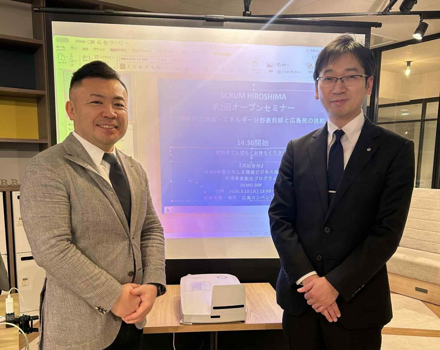 2026年2月5日(木)に開催された、「SCRUM HIROSHIMA オープンセミナー:国内外の環境・エネルギー分野最前線と広島発の挑戦」(主催:ひろしま環境ビジネス推進協議会)に代表の菅原が登壇しました。